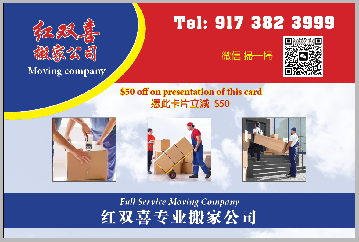 搬家就选[纽约红双喜搬家公司]!🏠 专业搬家,轻松靠谱!✔ 住宅